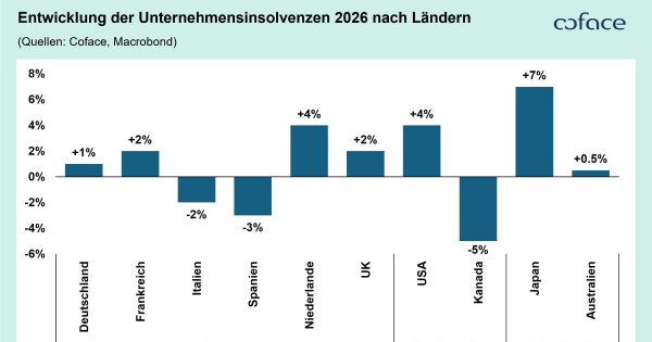 Die Zahl der weltweiten Unternehmensinsolvenzen bleibt 2026 hoch, zeigt jedoch erstmals Anzeichen einer leichten Stabilisierung. Nach deutlichen Anstiegen in den Vorjahren erwartet Coface in den großen Industrienationen einen moderaten Anstieg um 2,8 Prozent, für Deutschland ein Plus von 1 Prozent. Wie nachhaltig diese Stabilisierung ist, hängt jedoch stark vom Zinsumfeld ab: Schon eine Erhöhung um 25 Basispunkte könnte die globale ...